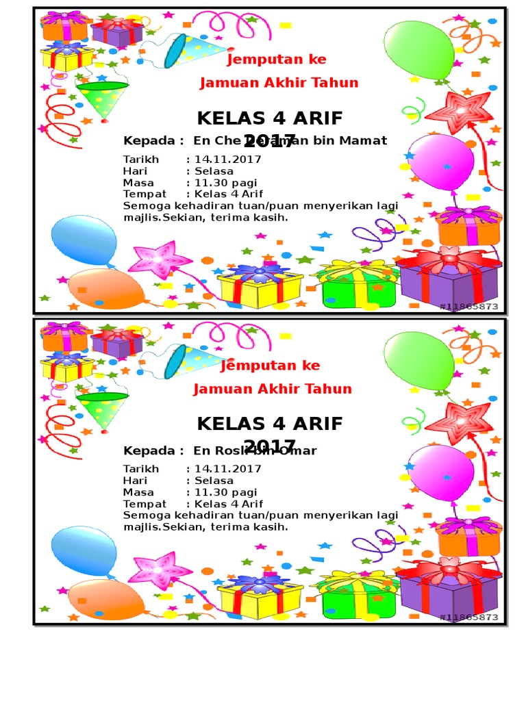 Moshims Contoh Kad Jemputan Jamuan Akhir Tahun Kelas. Kami dengan sukacitanya mempersilakan tuanpuanencik cik ahmad afendi ismail serta seisi keluarga ke majlis jamuan akhir tahun 2015 tarikh. View flipping ebook version of KAD JEMPUTAN MAJLIS PERSARAAN DAN JAMUAN AKHIR TAHUN SKTDA 2020 published by UMMU NAJAH BT ABDUL SHUKOR Moe on 2020-12-04.